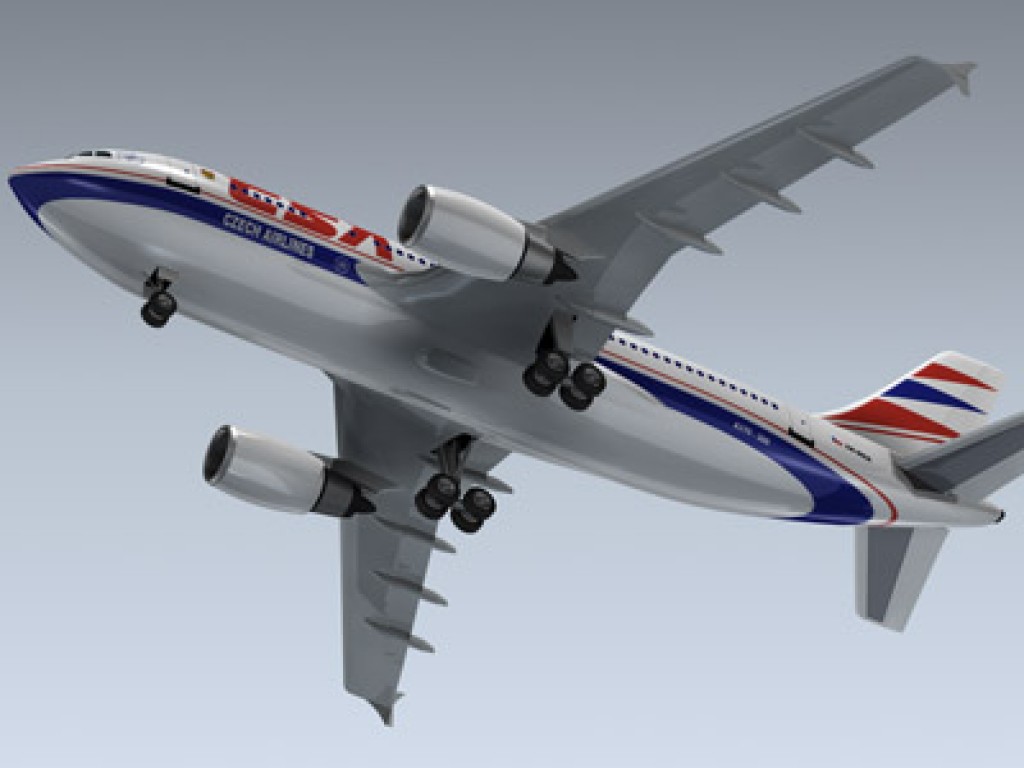 This is the Airbus A310-300 passenger jet in Czech Airlines livery. The model features very high resolution texture maps for close-up rendering. The model also features separate flaps, spoilers, rudder, horizontal tails and wheels for animating.