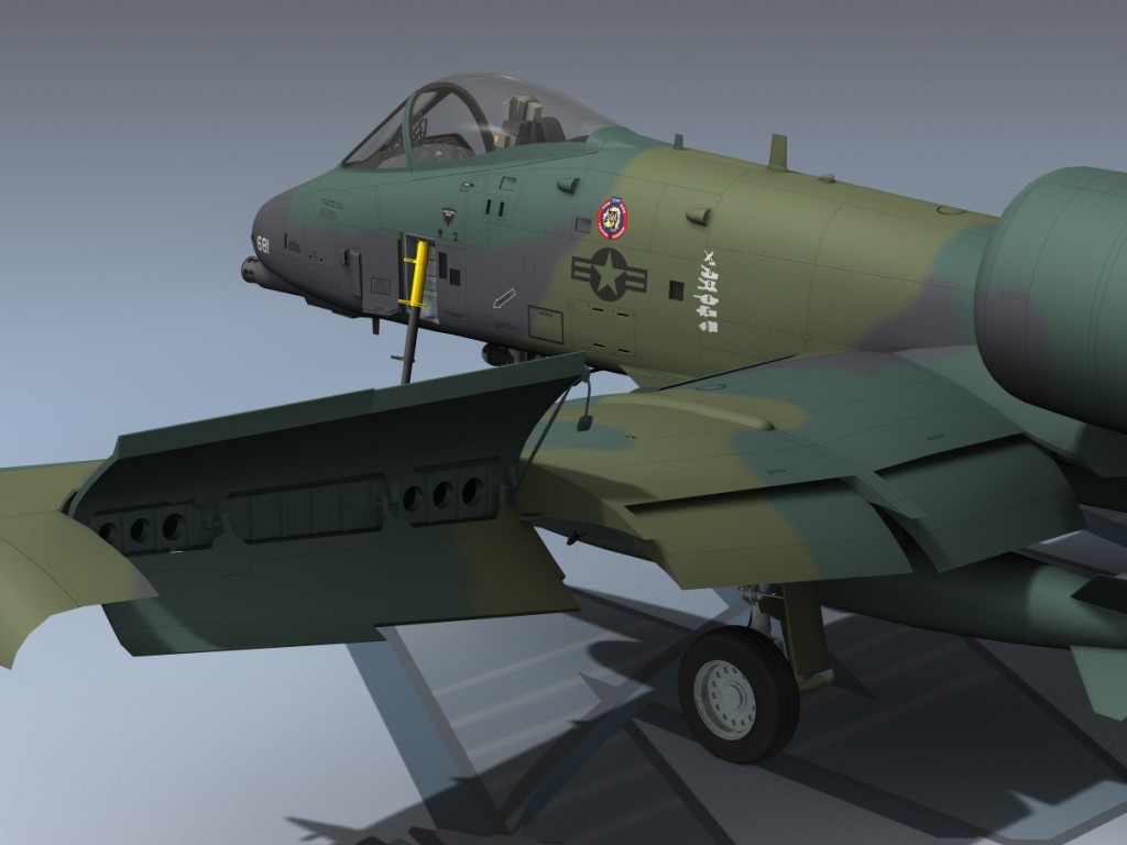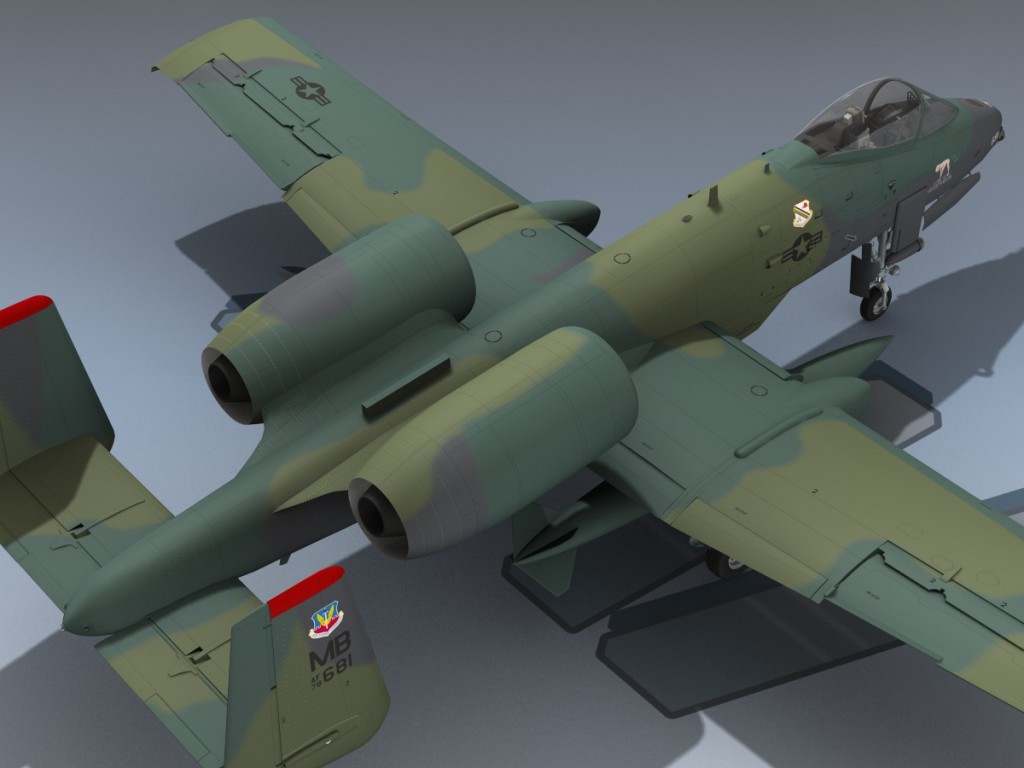Another in our series of highly-detailed A-10 3d models, this one accurately depicts a United States Air Force A-10A Thunderbolt II (Warthog) with well researched, historically accurate, 1991 Desert Storm era “Euro” paint scheme and markings.