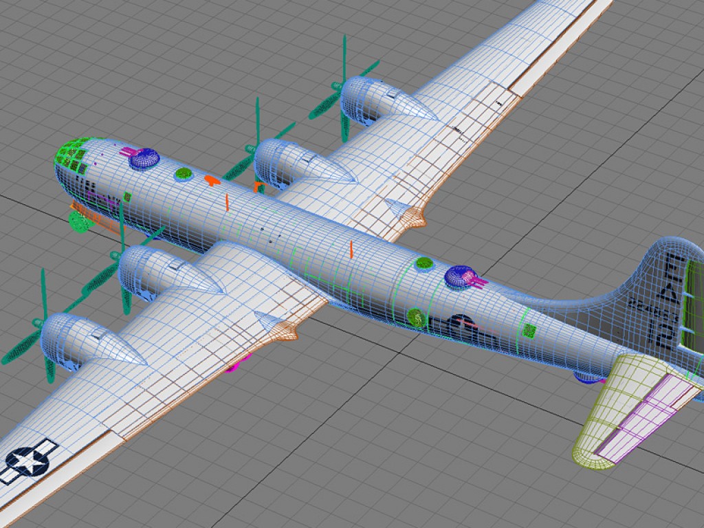 Includes separate flight control surfaces, landing gear, both open and closed landing gear doors, bomb bay doors, propellers, and gun turrets for animating.