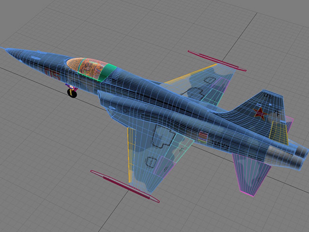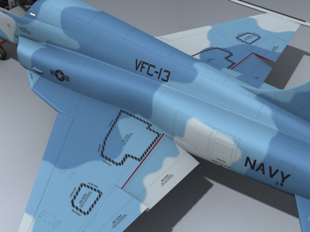 This is our very detailed US Navy Top Gun aggressor F-5E in Soviet blue camouflage. This one is ex-USAF with a round nose as opposed to the duck bill nose found on other F-5s.