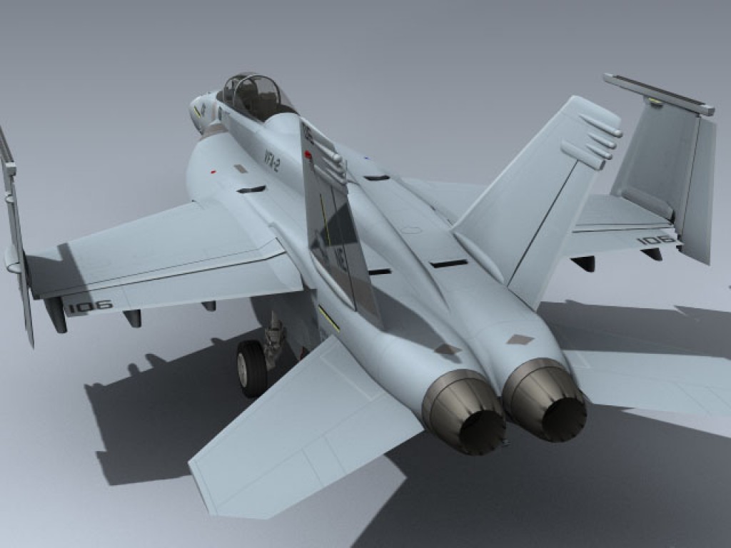 Very detailed two seat Super Hornet featuring separate flight control surfaces, canopy, landing gear, air bleed doors and ejection seats for animating. Includes both open and closed landing gear doors for fast in-flight setup.