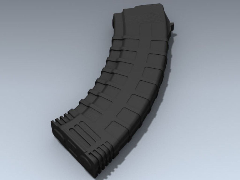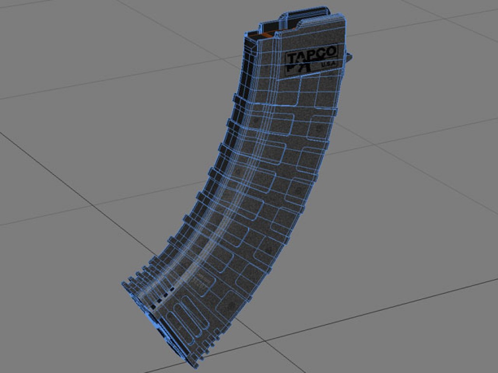 Very detailed and accurate Tapco Intrafuse 30-round detachable magazine for the 7.62x39mm AK-47 and its variants. Features separate follower for animating. The model also features very high resolution texture maps for close-up rendering.