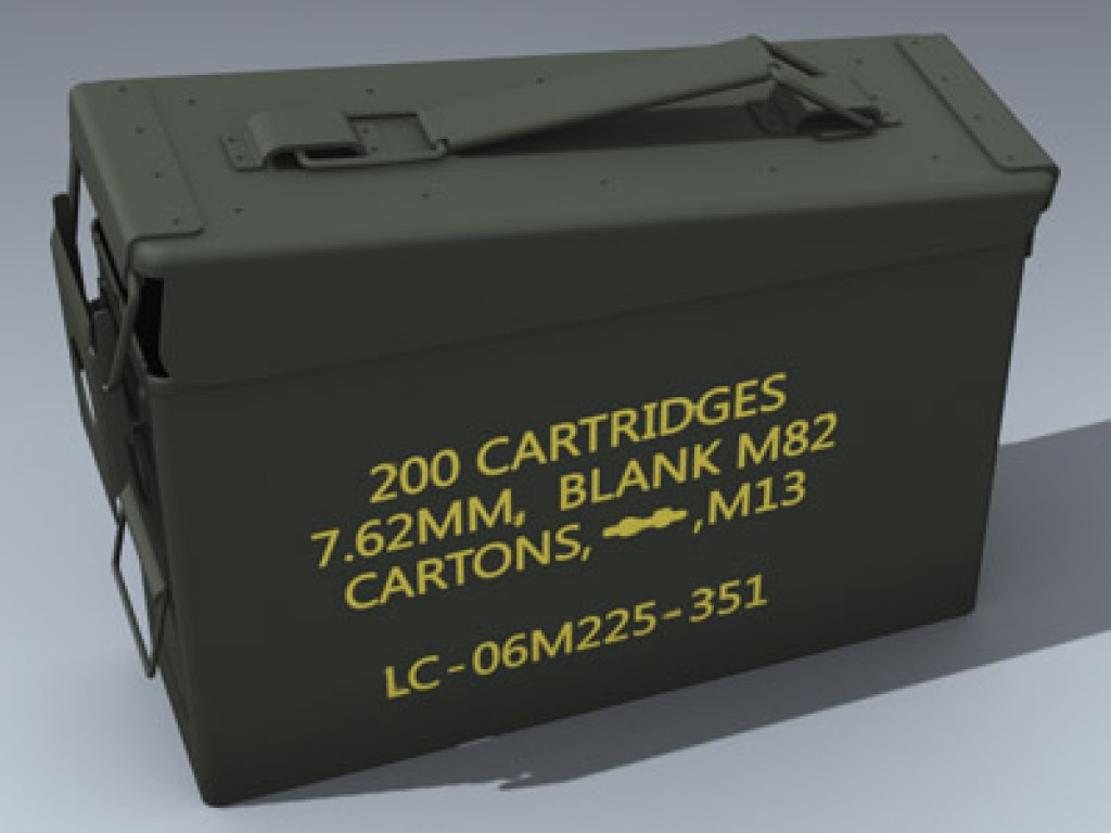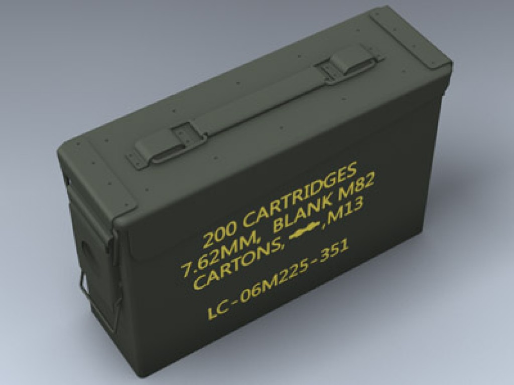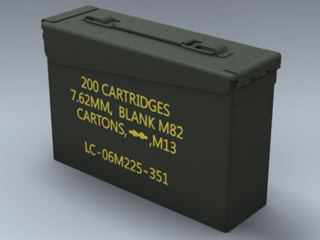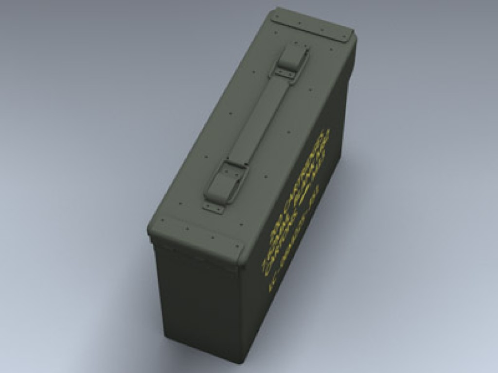 This is a very detailed, U.S. Army 30 caliber ammunition can. The geometry is complete inside and out. The model features separate latch, lid and handle for animating.