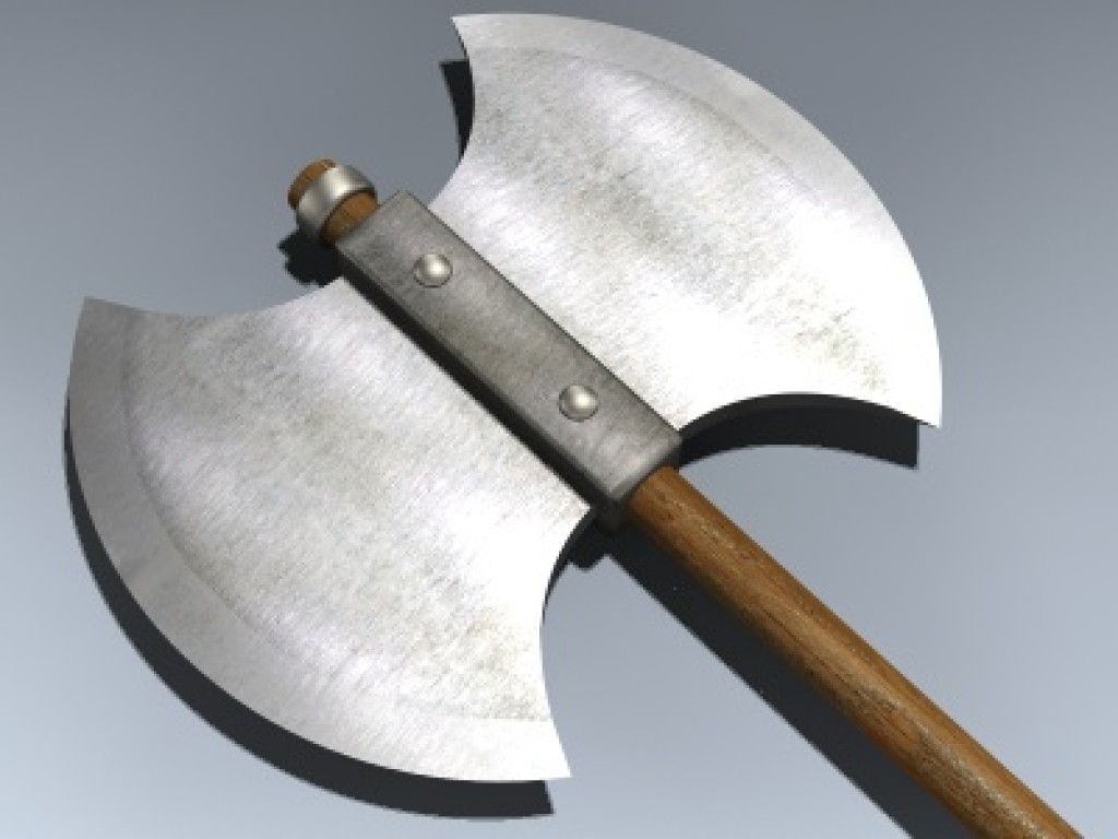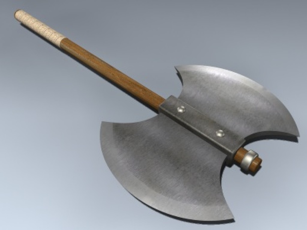 Very detailed double edged barbarian battle axe. Includes high resolution textures for close-up rendering.