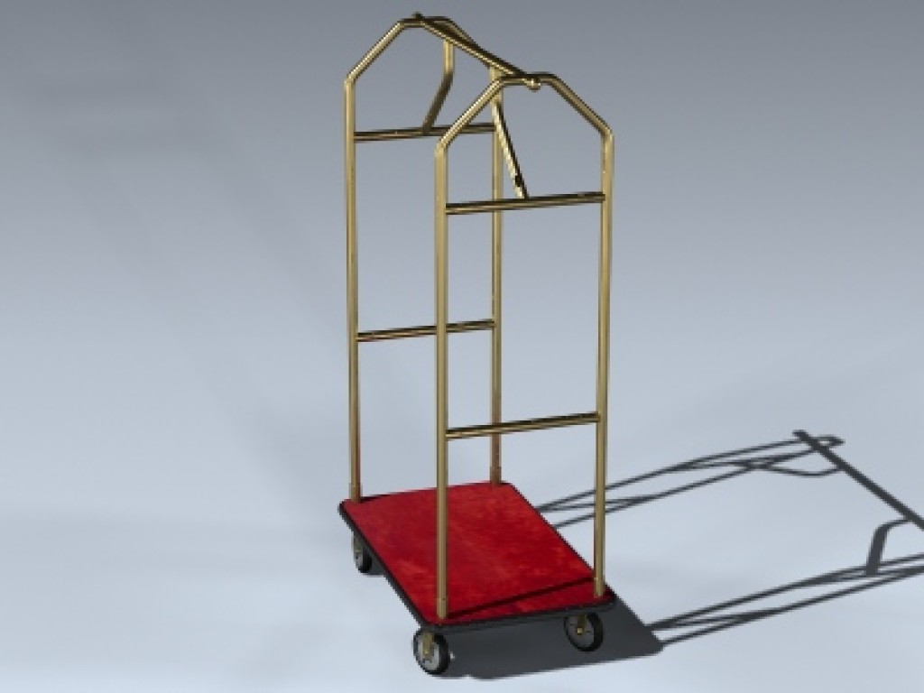 Very detailed bellhop's luggage cart commonly seen in hotel lobbies. Features separate casters for easy animating.
