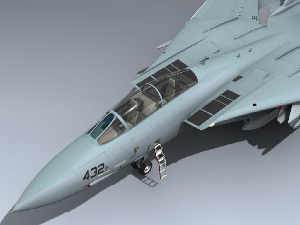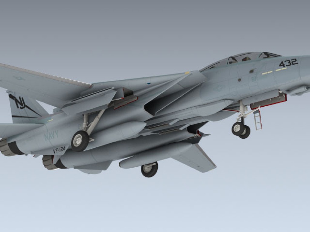 Very detailed US Navy interceptor with separate flight control surfaces, speed brakes, canopy, seats, intake ramps, exhaust petals and wings for animating. Low visibility paint scheme accurately depicts Gunslingers line jet circa 1991.
