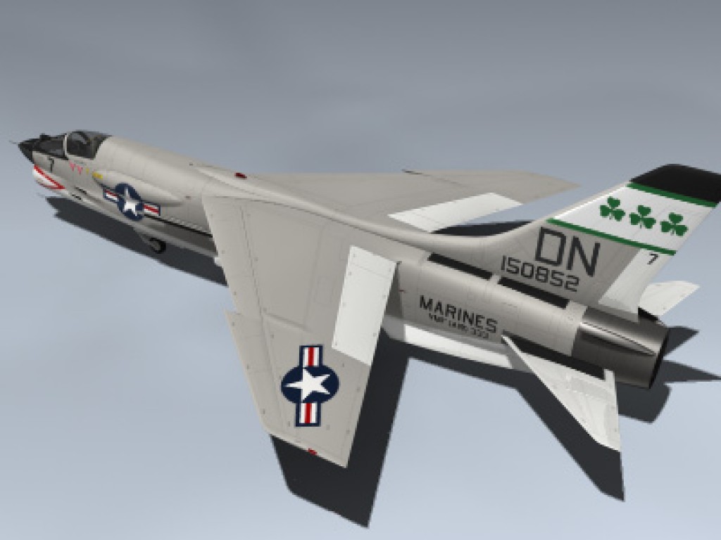 Extremely detailed Vietnam era US Marines fighter-bomber. Includes separate slats, variable wing, tails, rudder, canopy, seat and landing gear for animating. Model features correct 'E' details and very high resolution texture maps for close-up rendering.