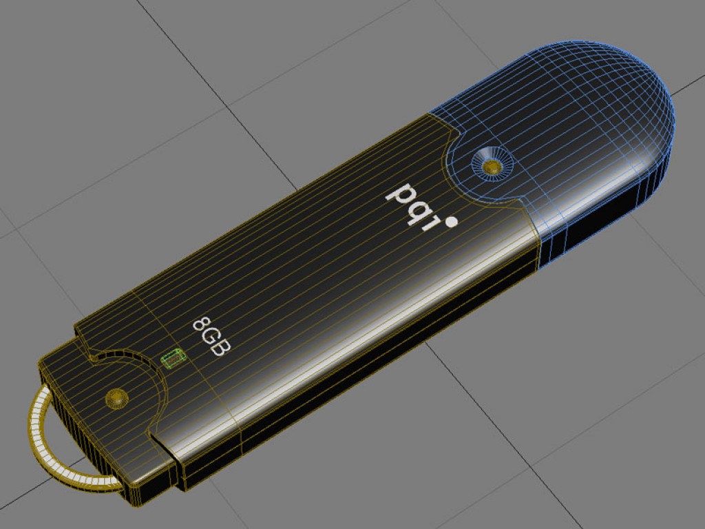 Very detailed 8 gigabyte flash drive with separate protective cap and LED indicator objects for animating.