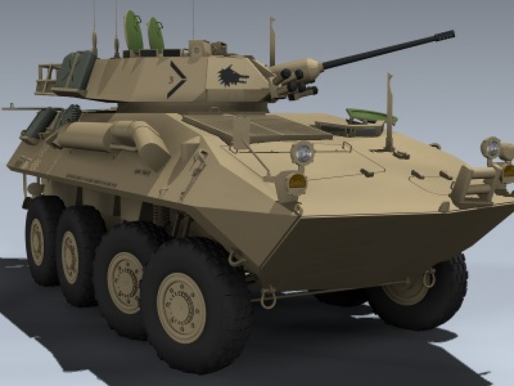 This is the gun version of the US Marines Light Armored Vehicle in desert tan. Features very detailed exterior and basic, low-res, boxed-in interior.