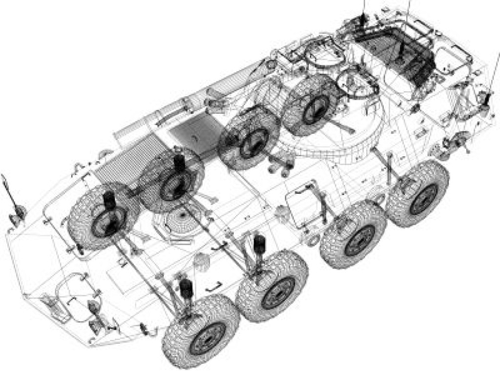 Includes separate parts for steering and suspension, as well as separate hatches, doors, mirrors and gun for animating.
