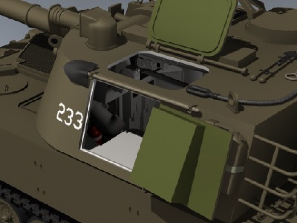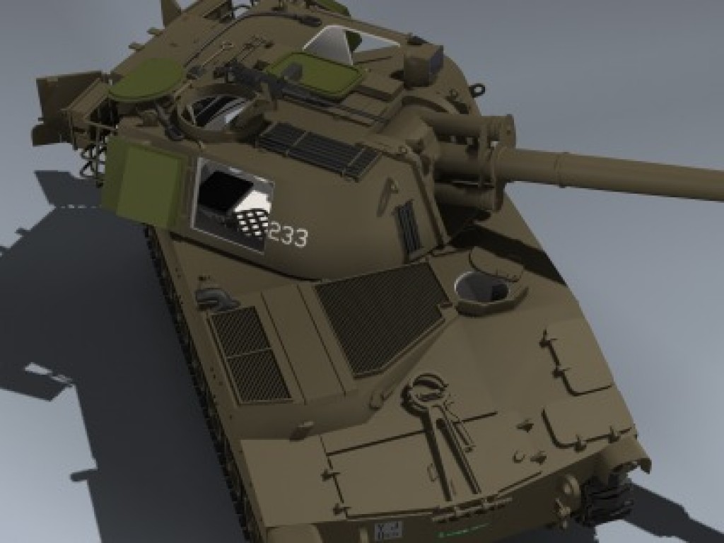 This model depicts an accurate Swiss Army A2 in standard Olive Drab scheme. The model features a detailed exterior and interior and includes separate track links, hatches, cannon, .50 cal gun, loading doors and many other accessories for animating.