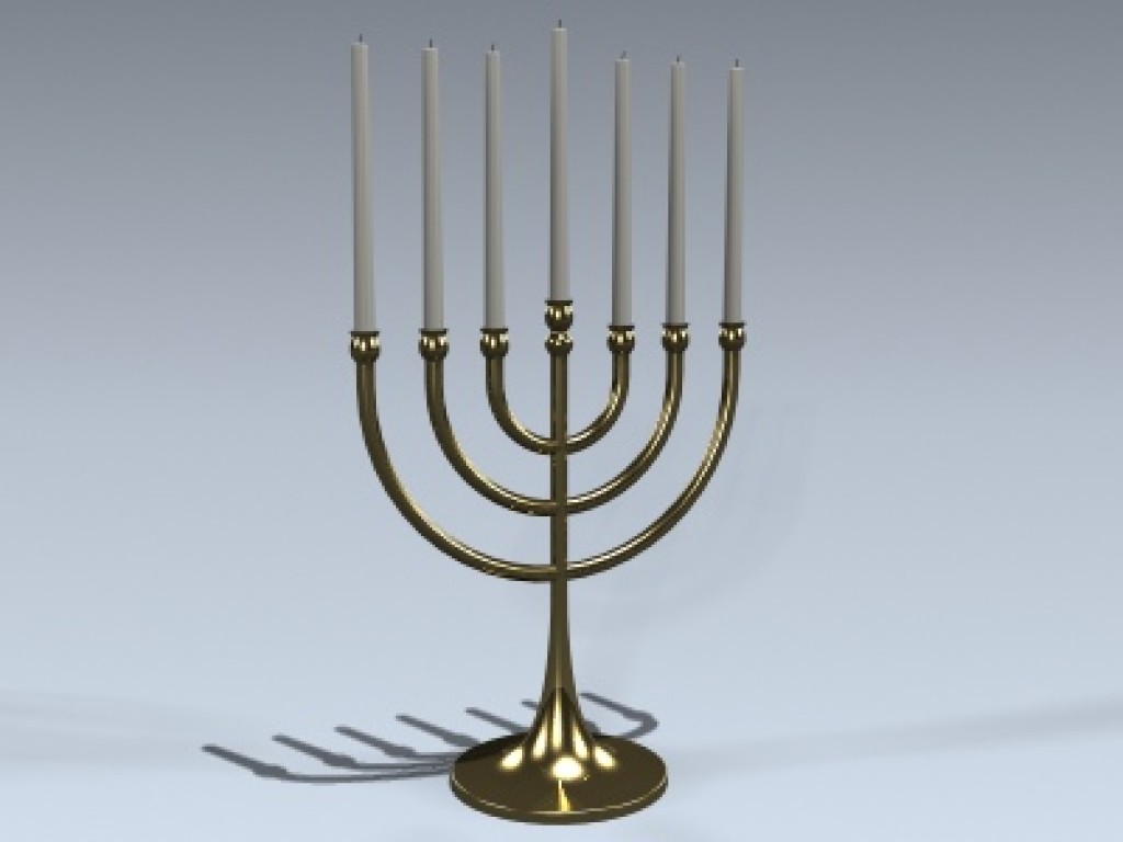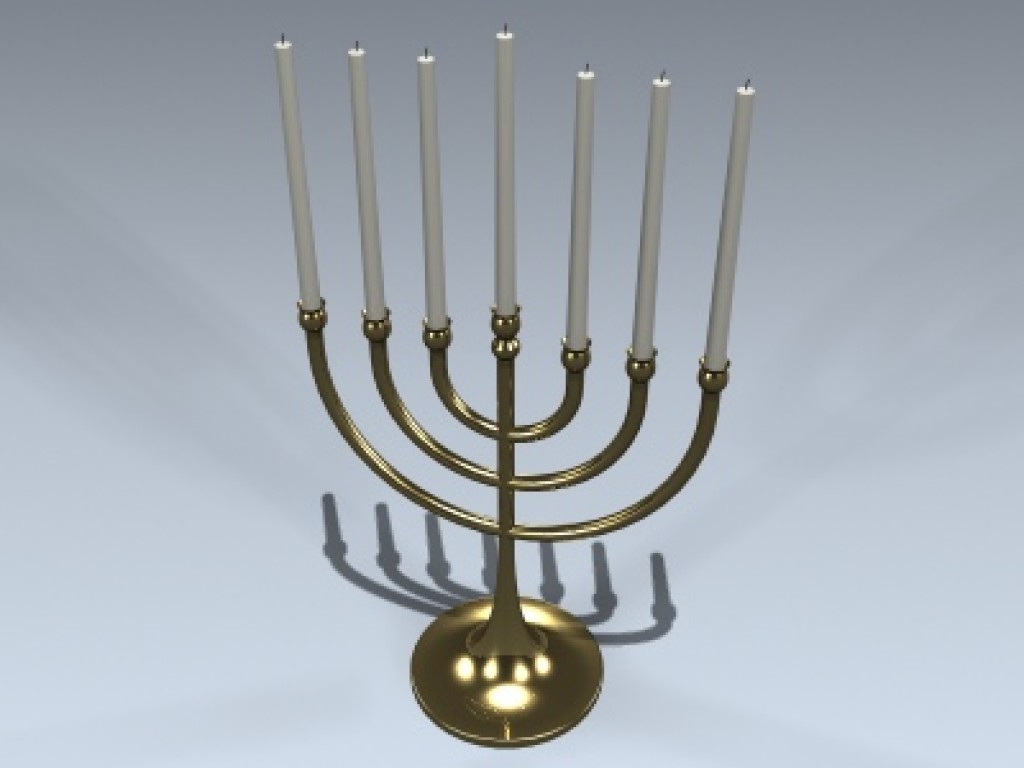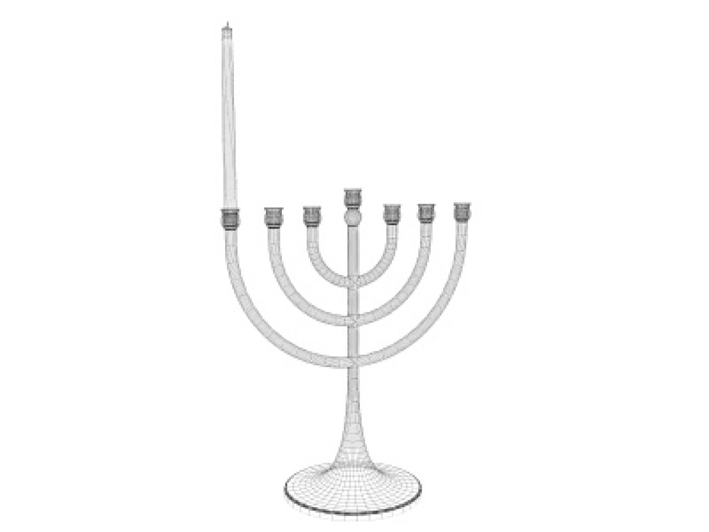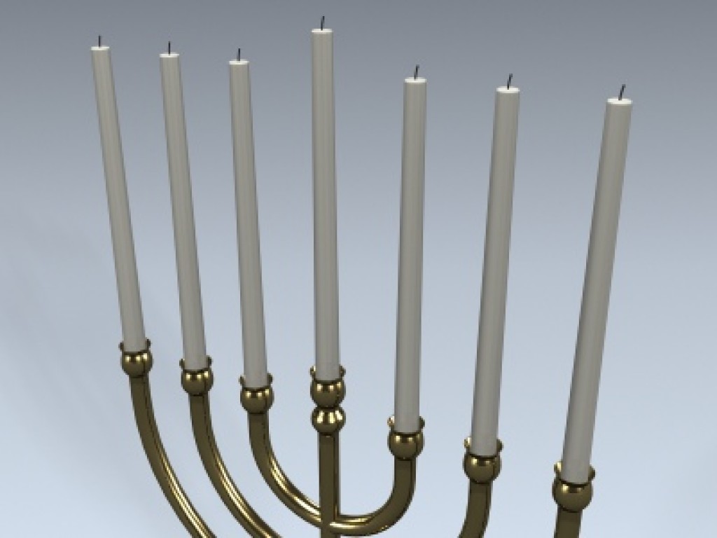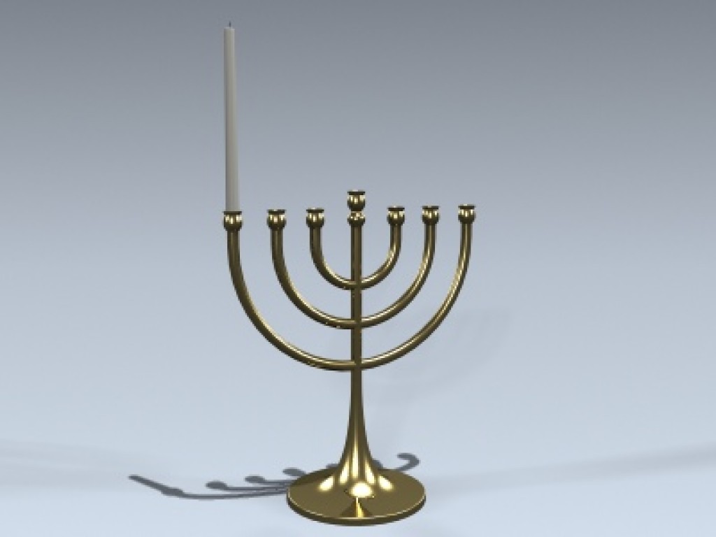 Very detailed menorah object with one candle. Simply clone or copy the candle to populate the other holders.
