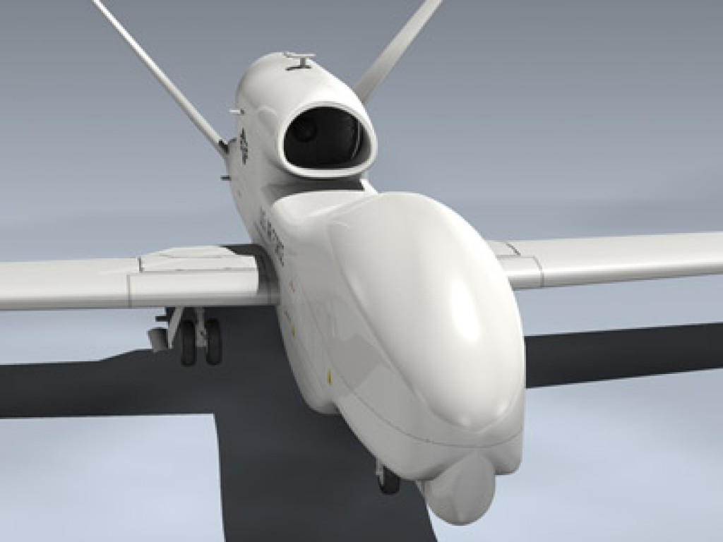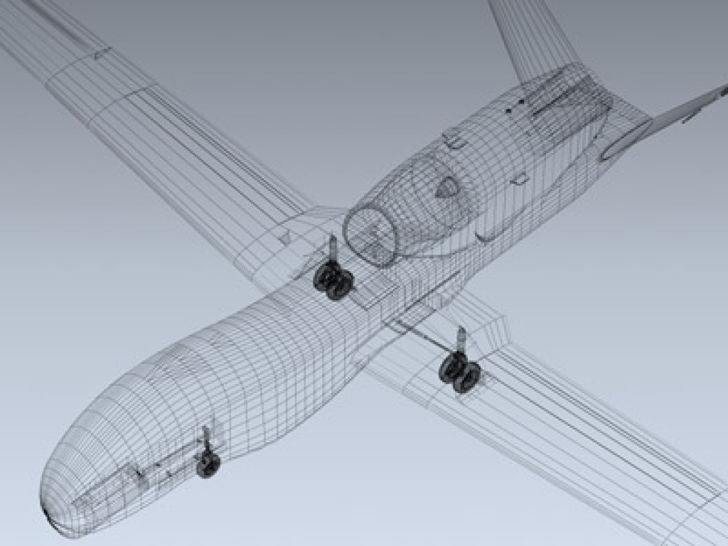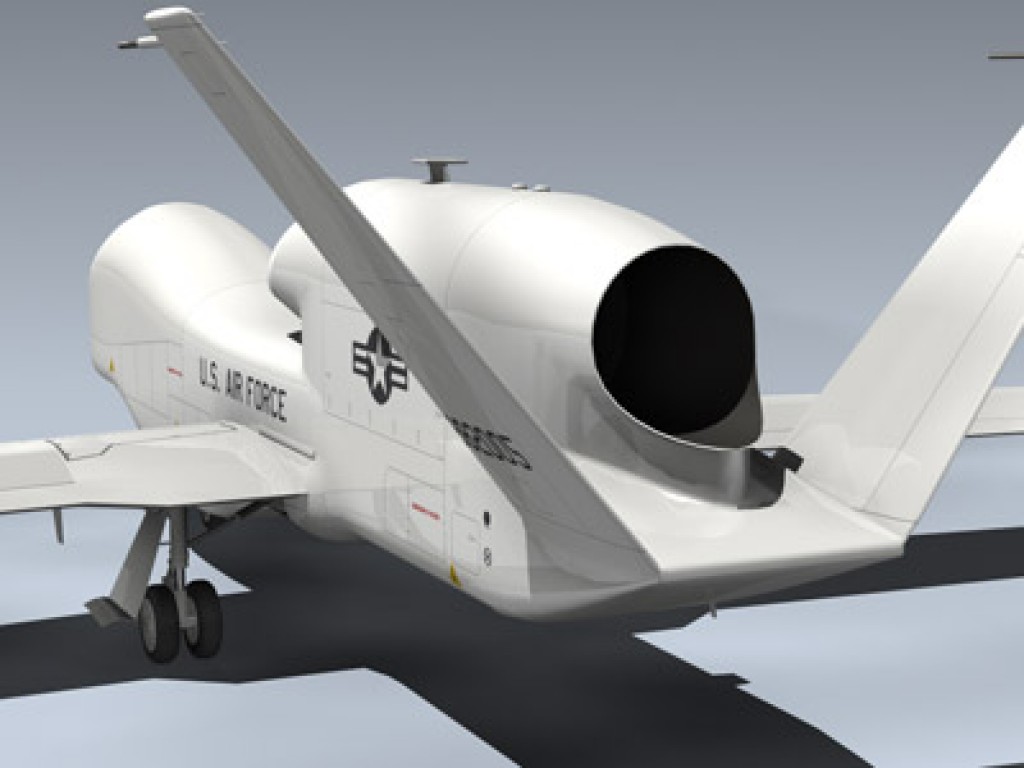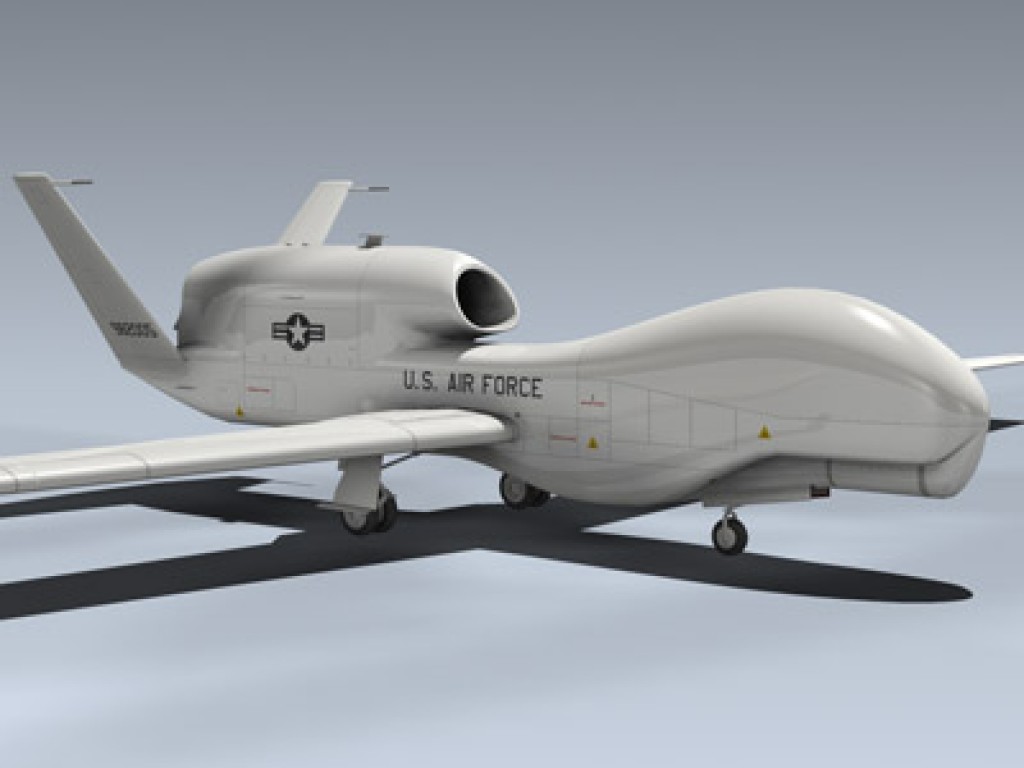 Very detailed USAF drone aircraft with separate control surfaces, camera pod and detailed landing gear for animating.