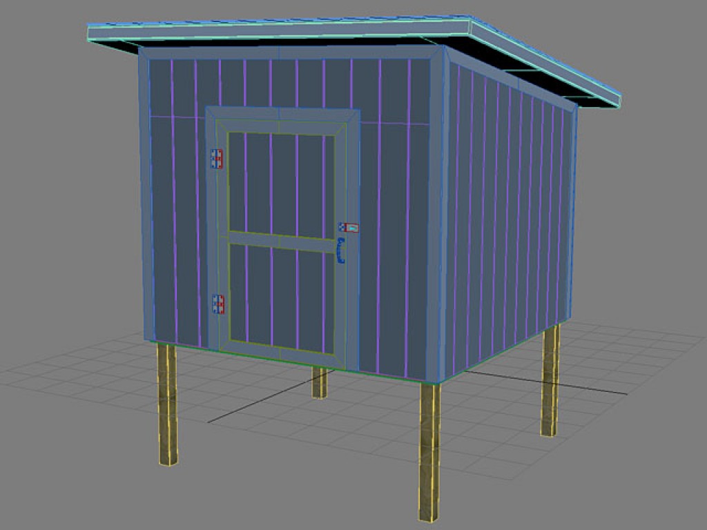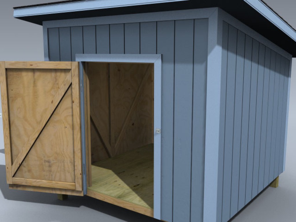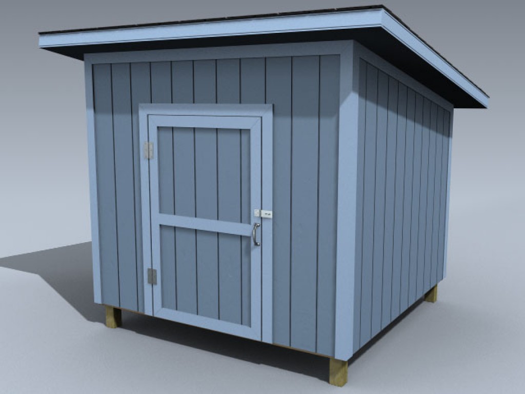 Very detailed 8 foot x 8 foot lean-to tool/utility shed featuring framing lumber, siding, roof and flooring as separate elements for deconstruction animation and rendering. The model can even be disassembled board by board!
