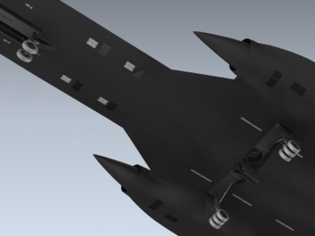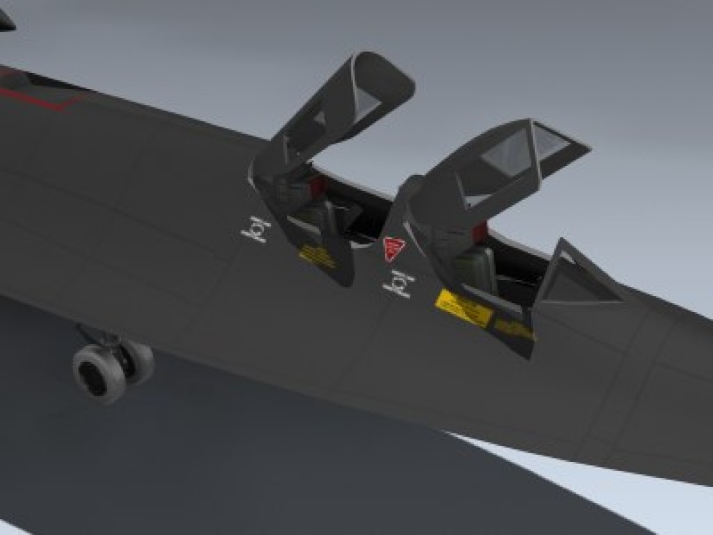 Accurately detailed supersonic spyplane with separate flight control surfaces, canopies, ejection seats and landing gear for animating.