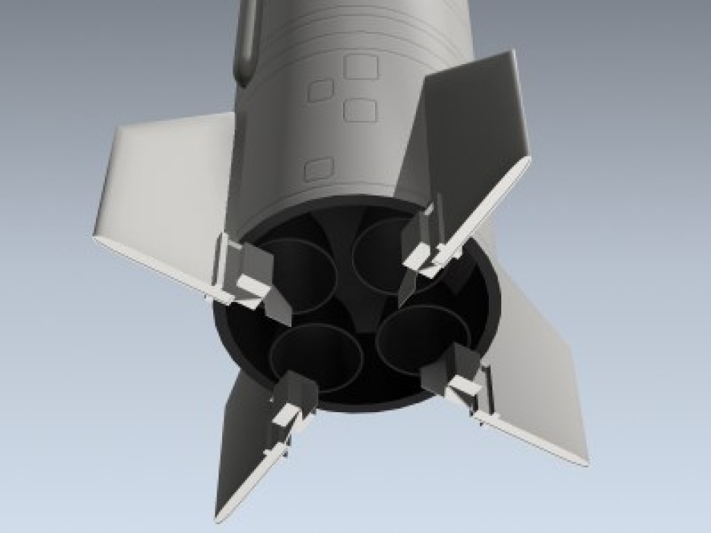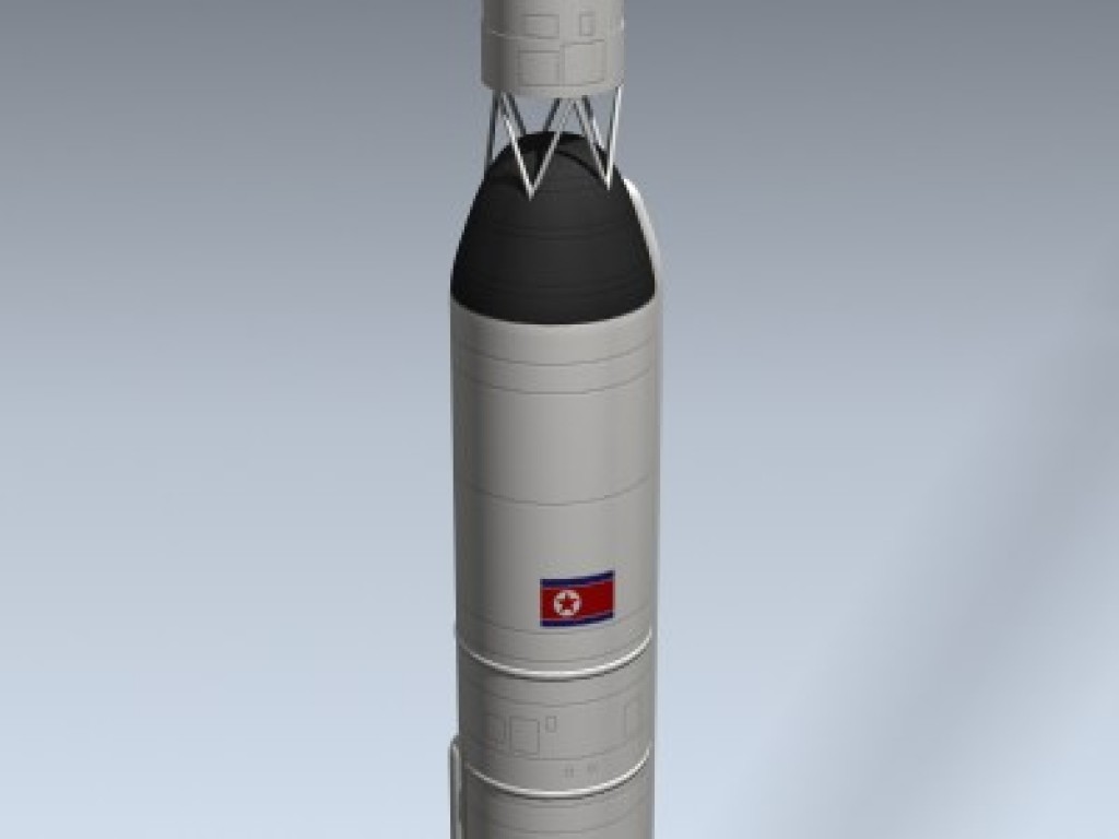 Detailed North Korean multi-stage missile. Features separate rocket stages, framework and steering fins for animating.