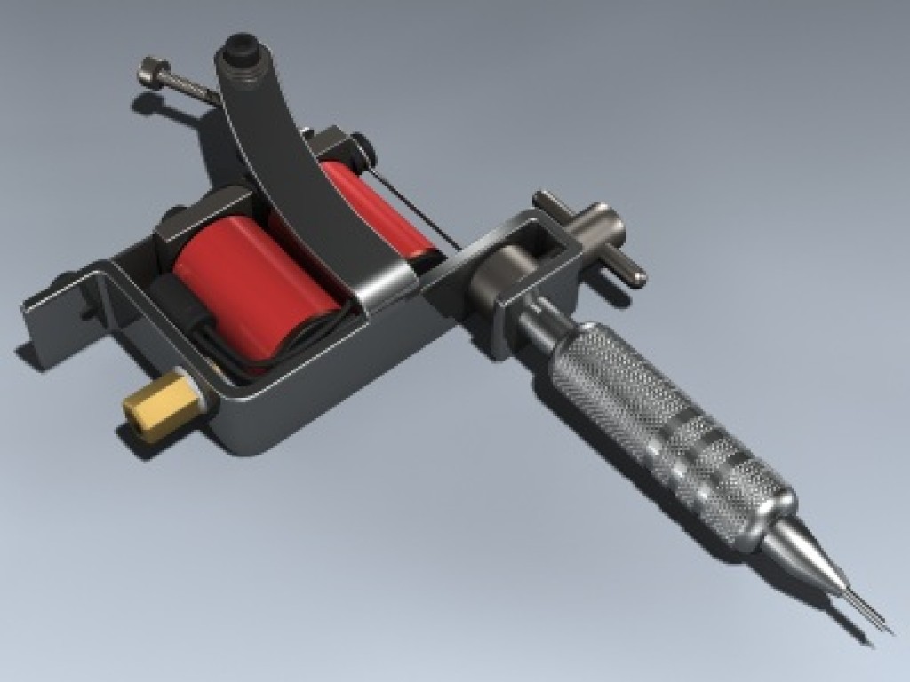 Extremely detailed, professional tattoo gun with separate parts for animating.