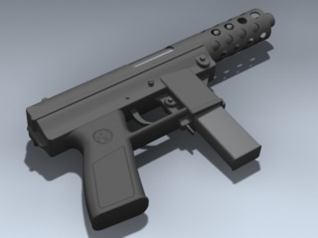 Very detailed semi-auto pistol with separate magazine and ejector cover for animating.